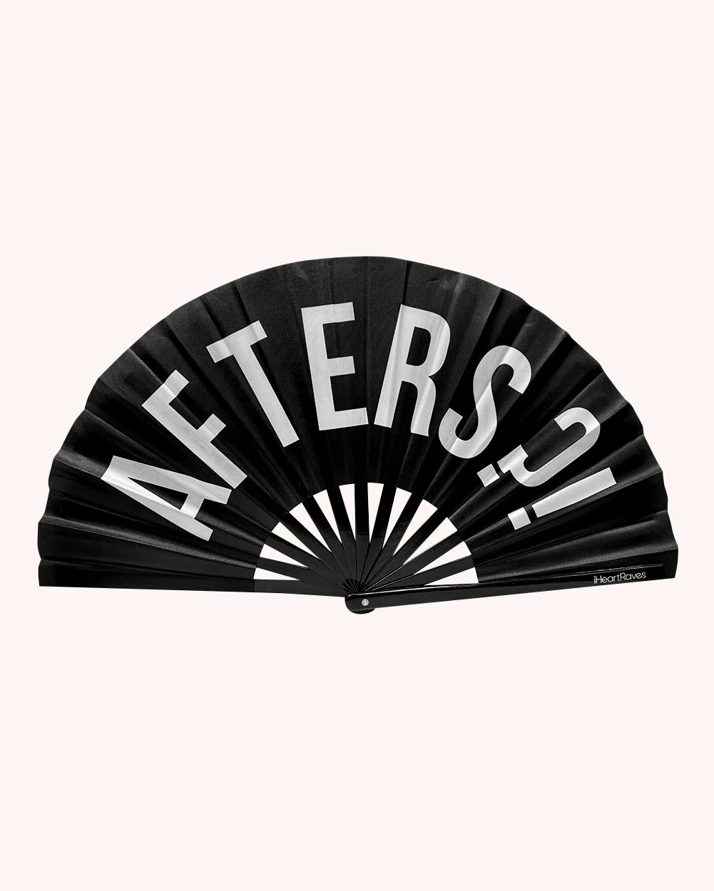 Afters?! UV Reactive Hand Fan ’cause you’re ready to keep the night alive. Featuring an all-black construction with a bold graphic that’ll have you locked in during all your rail-riding chaos.