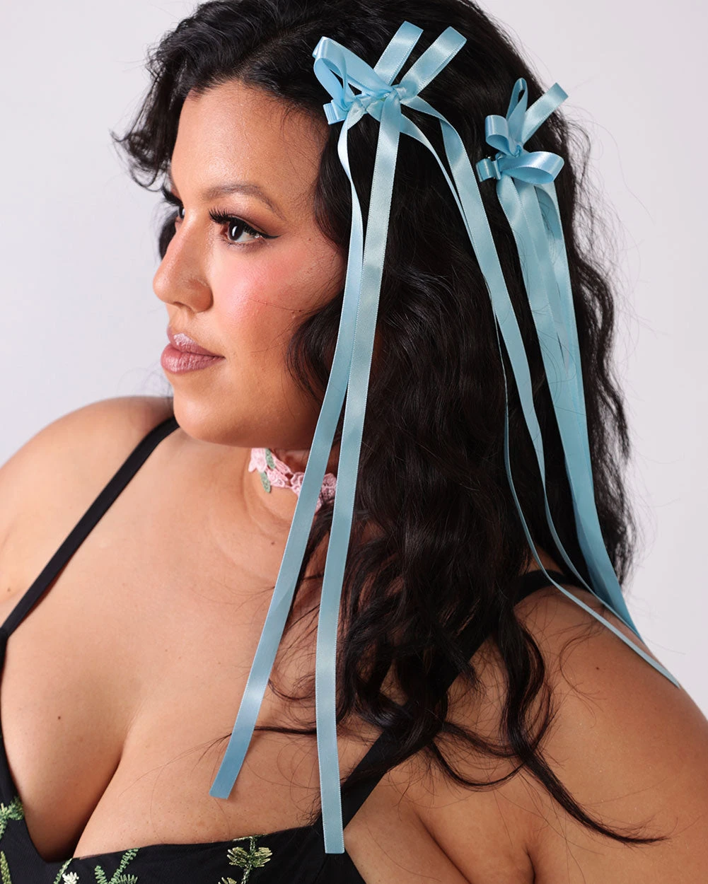 Join the oh-so-adorable coquette trend with the Baby Doll Ribbon Bow Hair Clips! It comes in baby blue, baby pink, and black, to perfectly match your vibe and festie look.