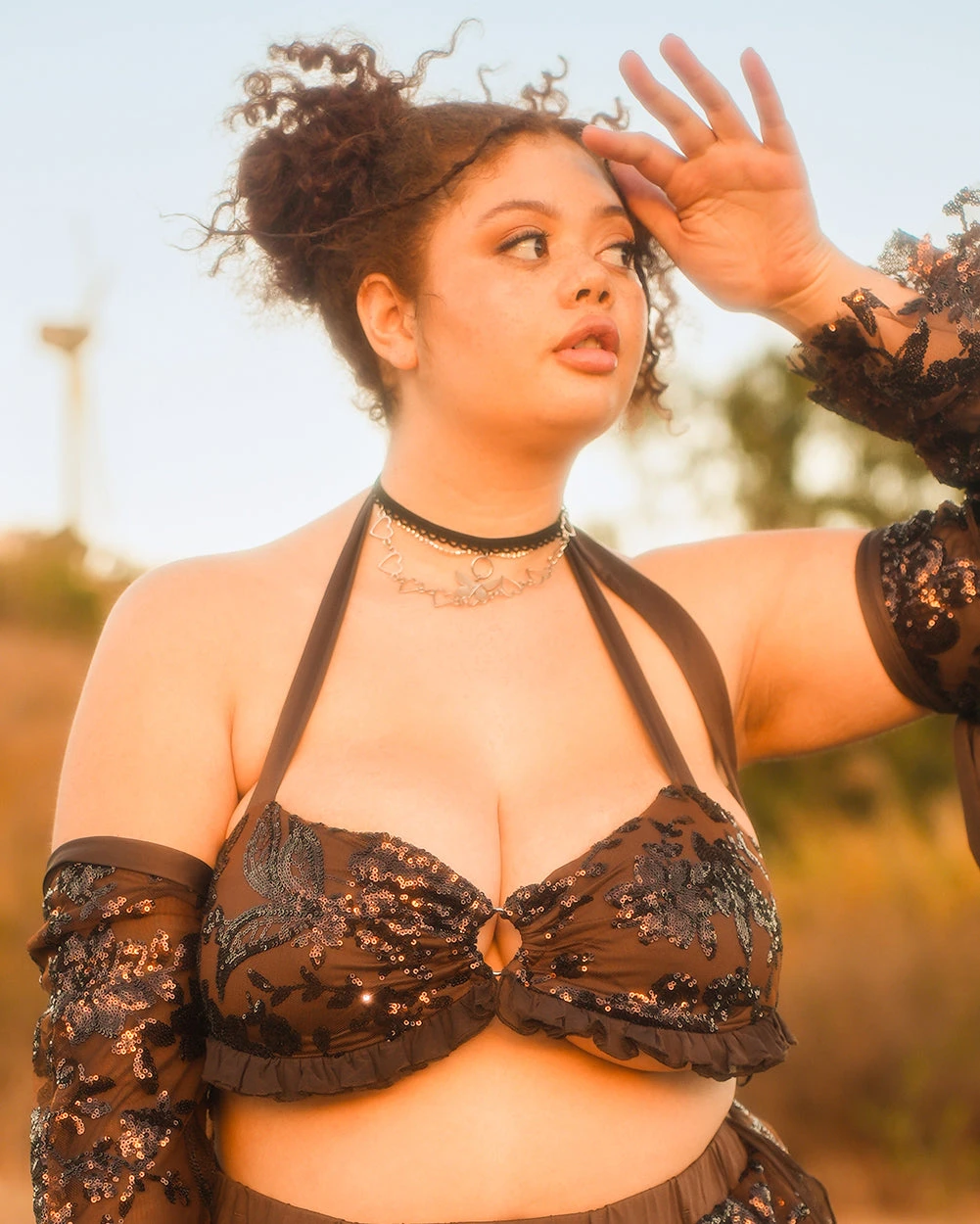 The Bohemian Princess Sequin Ruffle O-Ring Top is made for the free spirits who dance where the desert meets the stars! With rich, earth-toned sequins, ruffled edges, and an alluring o-ring detail, this top is an effortless outfit perfect for sunlit wanderings til moonlit magic.