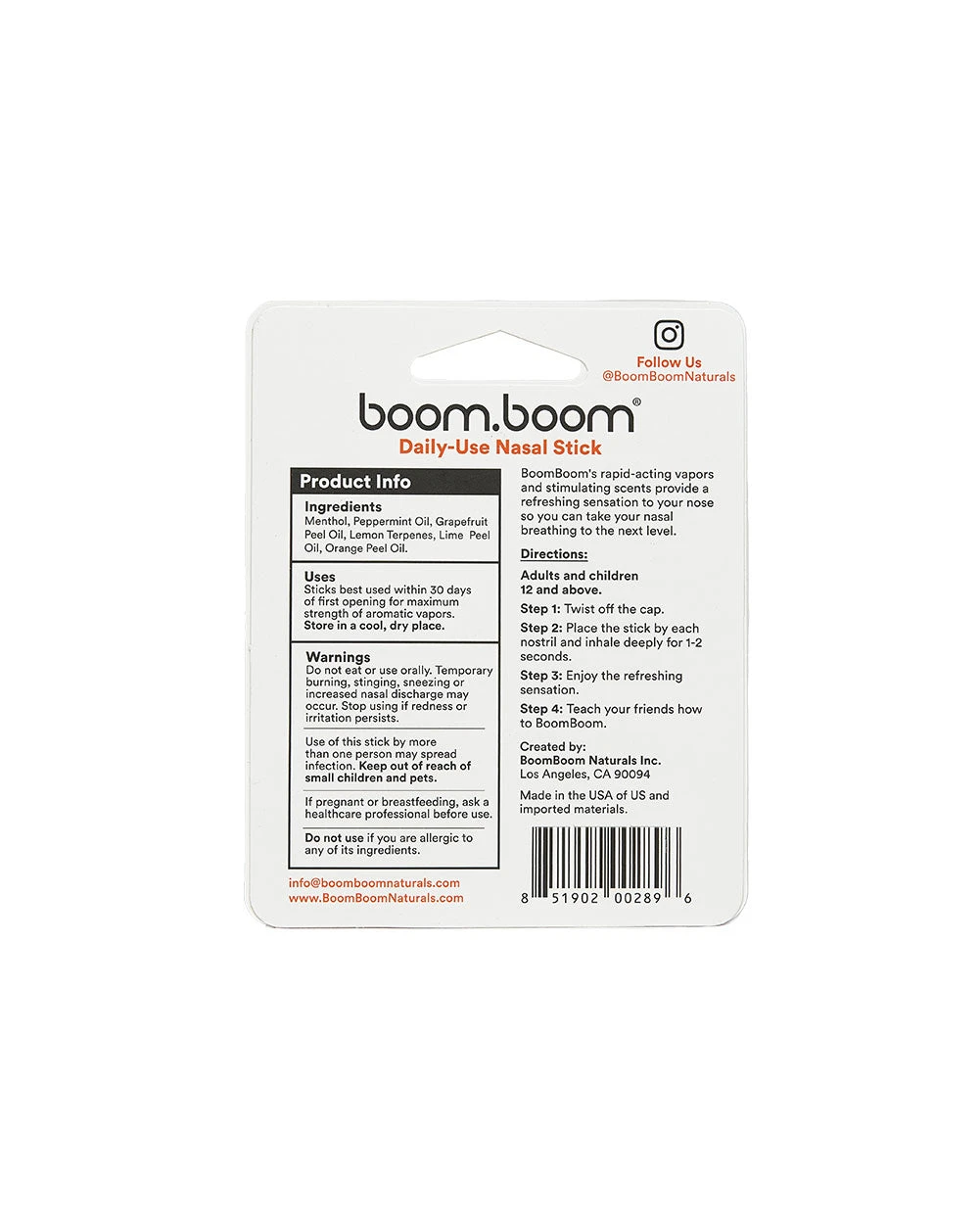 Awaken your senses with the BoomBoom Tropical Rush Energizing Inhaler! You’ll love its’ botanical burst of mint-infused orange, grapefruit, and lemongrass with notes of island pineapple, eucalyptus oil and cooling menthol.
