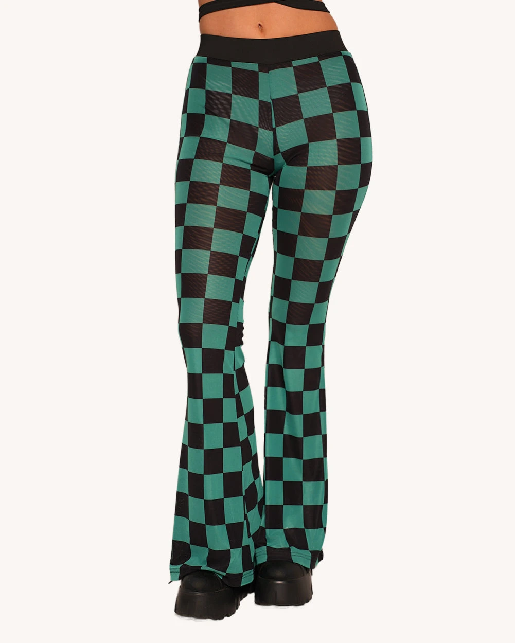 Get battle-ready with the Demon’s Mercy Mesh Pants! Featuring a striking green checkered print, a figure-flattering fit and a playful flared-bottom design, these pants are made for those who refuse to back down.
