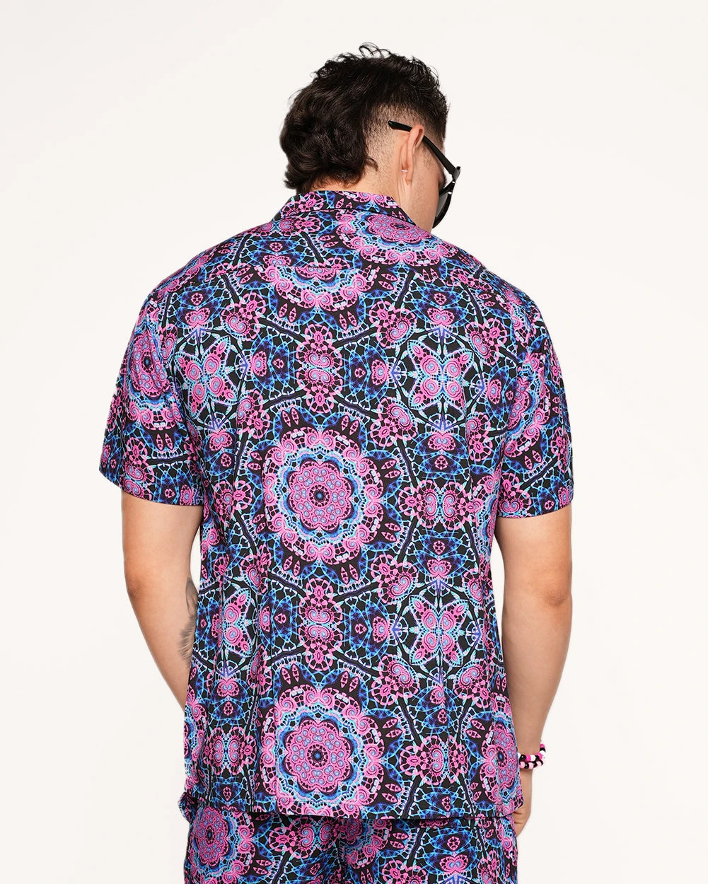 Ride the festival vibes in the Dreamwave Camp Shirt! With a mind-melting print straight out of a technicolor daydream, this top was made for dancing from sunset to sunrise.