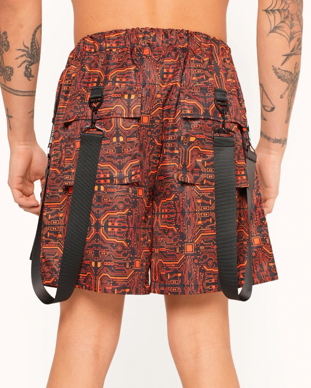Spark up the dance floor in our Electro Techno Cargo Shorts, designed to electrify your rave experience! These men’s rave shorts feature a stretchy waistband, a comfortable fit, and a vibrant electric grid pattern. Time to turn up the voltage!