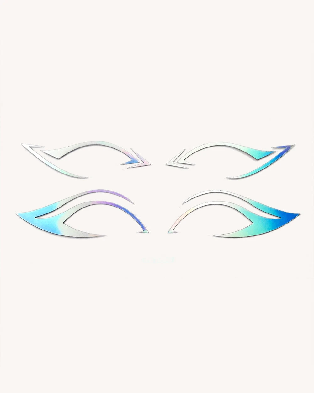 Level up your look with the Glow Gleam Holo Face Stickers’ sleek, cyber-chic energy! Featuring razor-sharp, eyeliner shapes that catch the light and shift colors with every step.