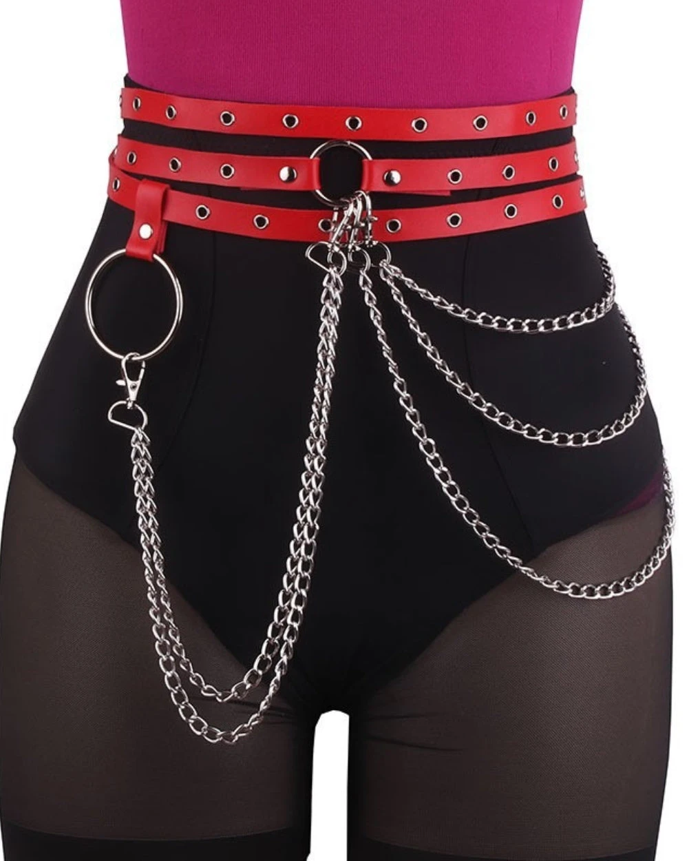 Dominate the dance floor with our Gonna Show You Chain Belt! It has multiple straps that accentuate your curves, metal stud accents, and dainty chains that cascade across the body.