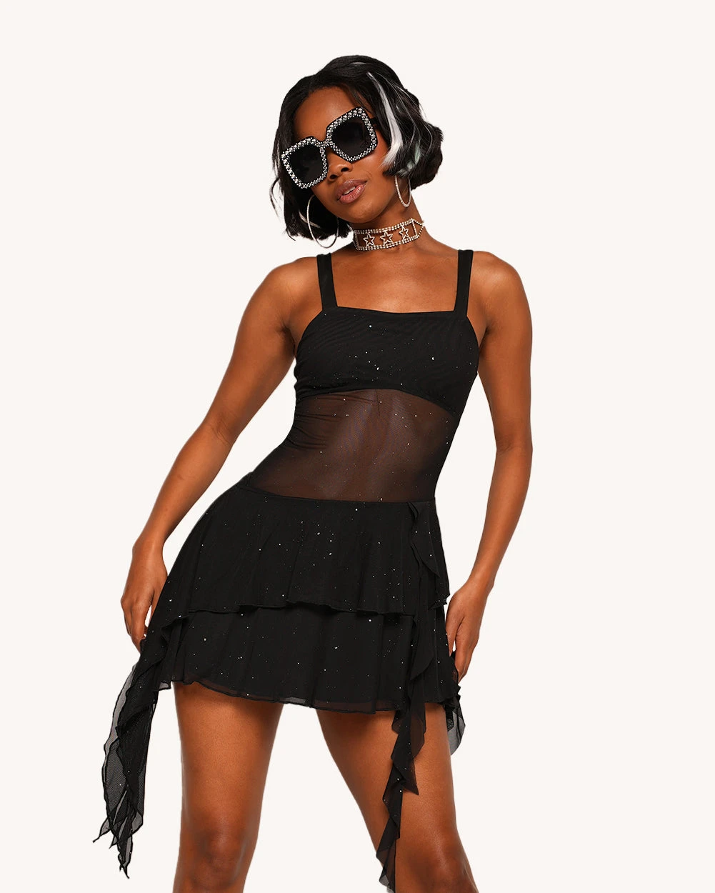 They can’t handle how hot you’re gonna look in our Holo Star Dress. The stars shine just for you in this black mesh rave dress that features a black sheer with holographic star fabric, and soft and stretchy construction.