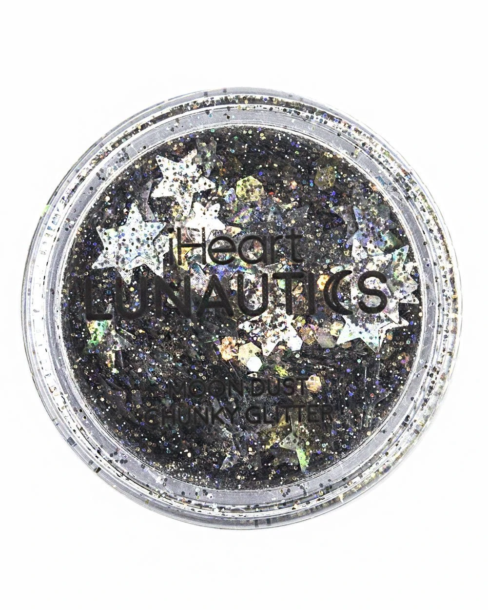 iHeart Lunautics Supernova Glitter will make you shimmer like the cosmos! Sparkle like the cosmos with twinkling silver stars and moon dust glitter from Lunautics.