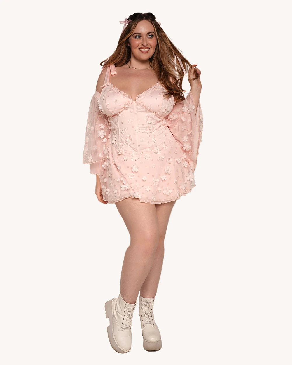 You’re the main character, and the Magic In You Floral Dress with Sleeves is pure fairycore fantasy! It’s made for twirling through the festival grounds with soft pastel petals, dreamy sheer sleeves, and corset detailing that hugs you in all the right places. Feel the breeze, feel the bass, and let your magic bloom under the electric sky!