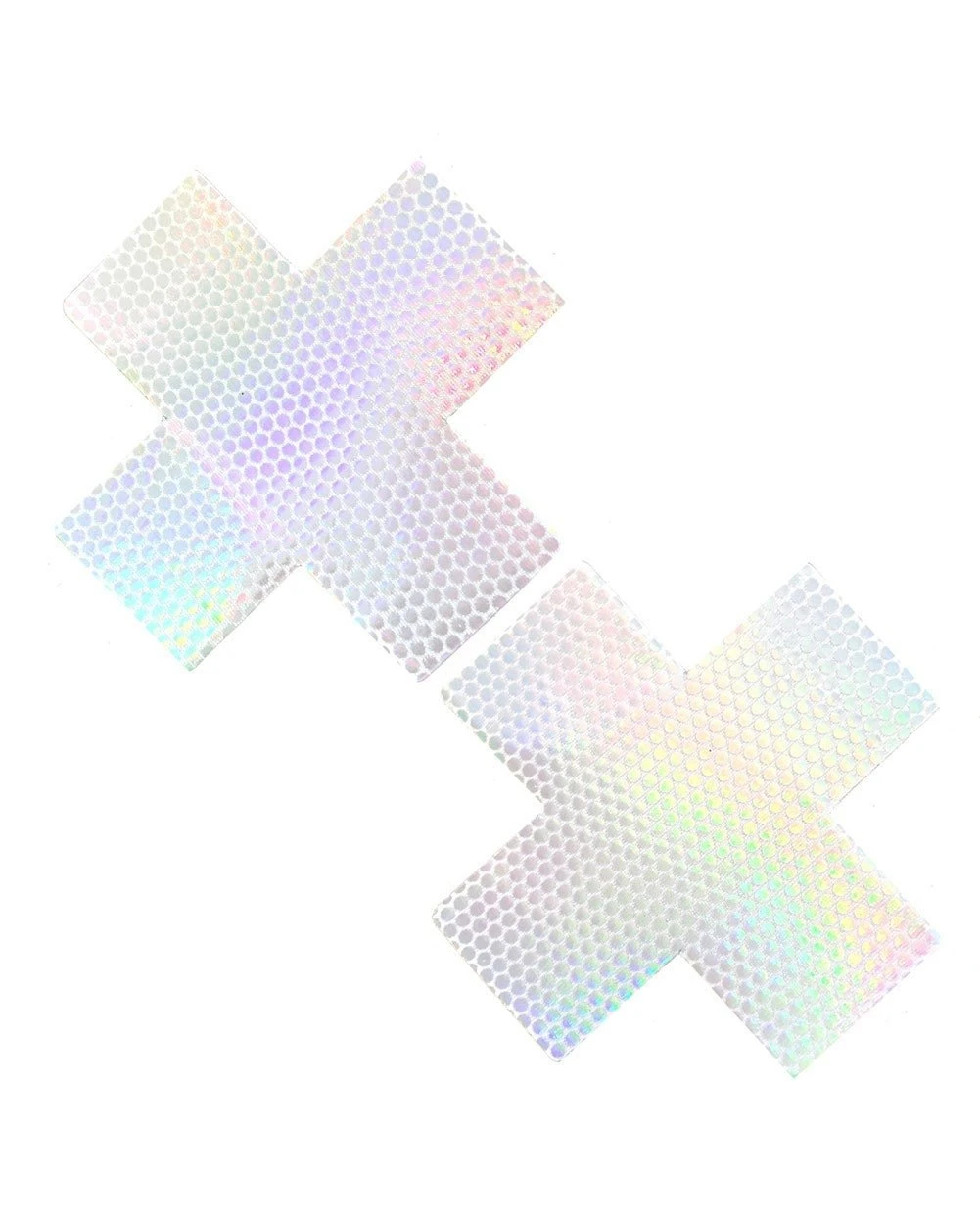 Party vibes and ecstasy gush uncontrollably from these white holographic pasties. Wherever the flow takes you, you’ll be unstoppable… and it’s always better pure, right? Shimmer with all the colors of the rainbow in our Neva Nude Liquid Party White Hologram Cross Pasties!