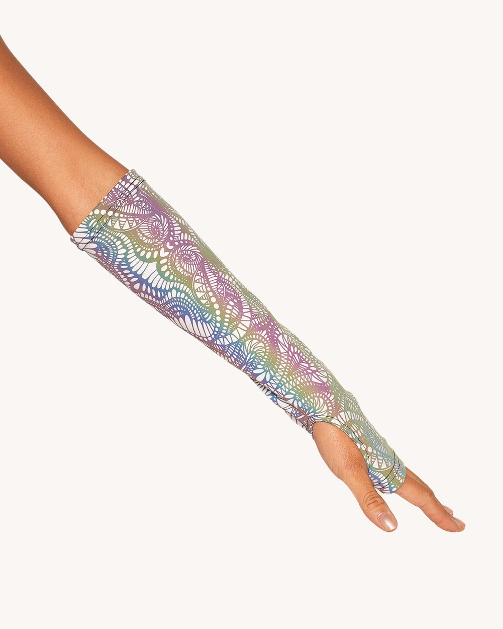 Charge up and electrify the night in the Pure Euphoria White Rainbow Reflective Hood & Sleeve Set! Complete your rainbow reflective look with these accessories, and you’re ready to move and look like a lightning strike—unpredictable, unstoppable, and impossible to ignore.