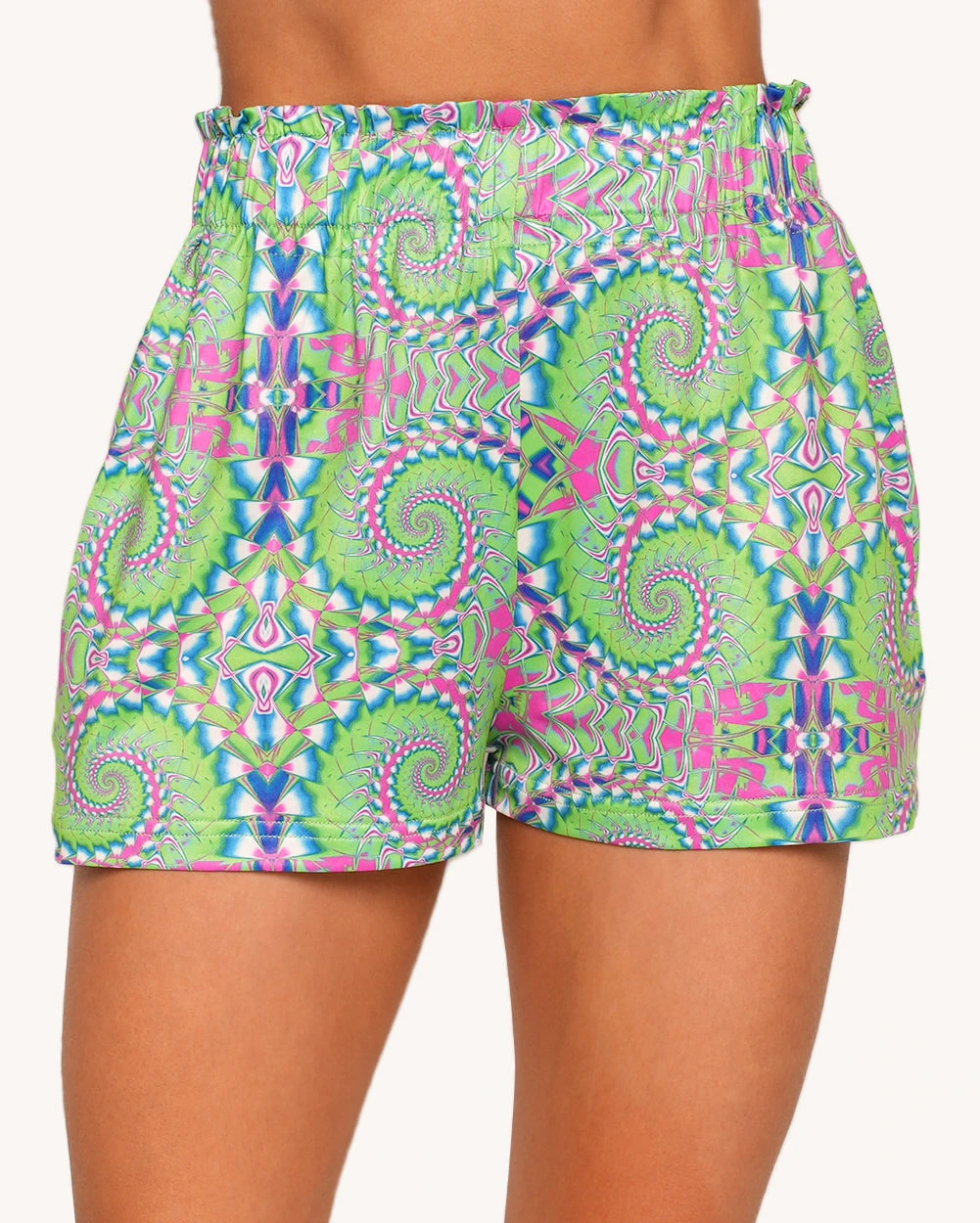 Spiral into another dimension with the Spirit of the Forest Shorts! These neon jungle dream bottoms are bursting with psychedelic energy—featuring hypnotic swirls, fluorescent colors, and a kaleidoscopic pattern that glows under UV light.
