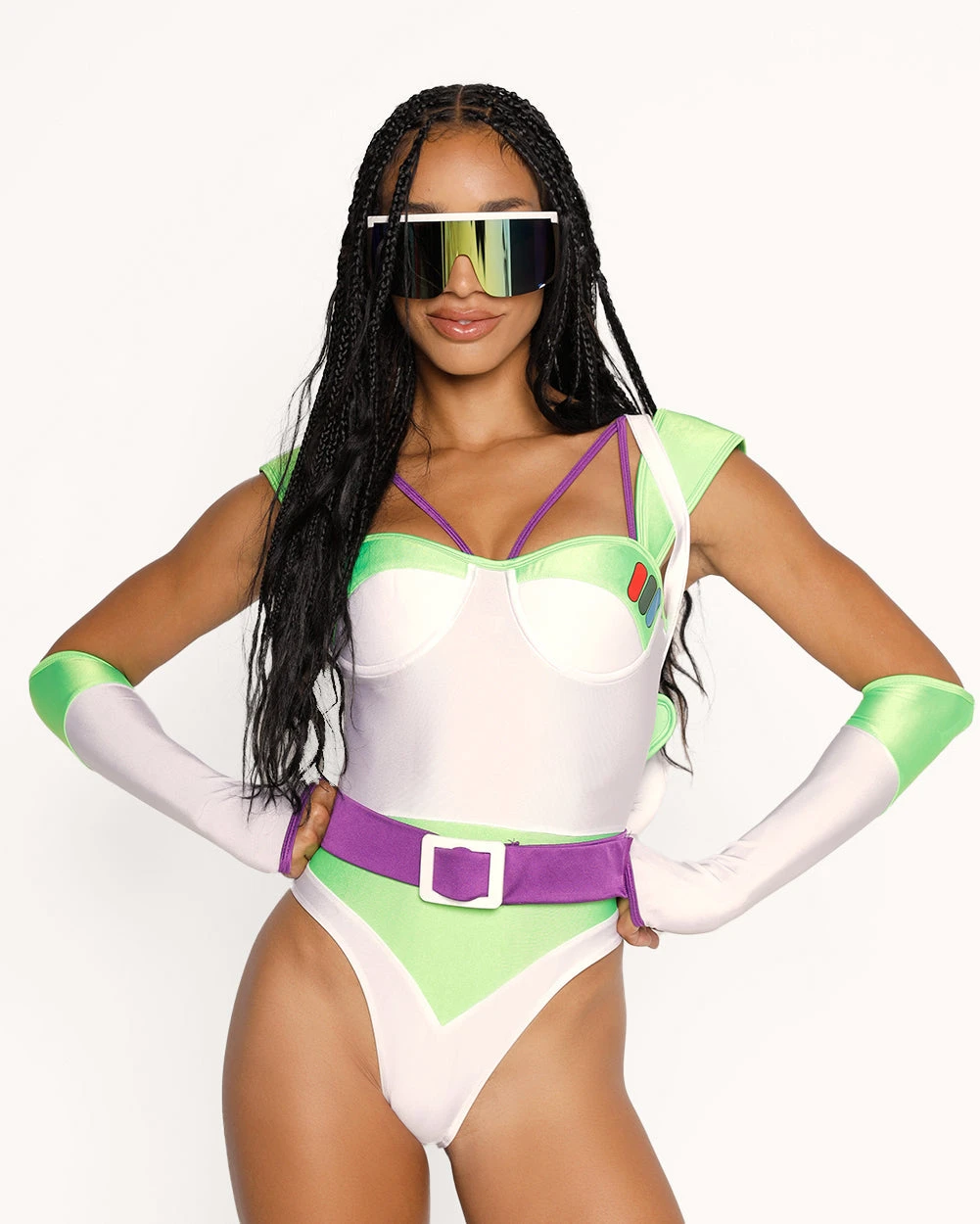 Conquer new dimensions this Halloween with our To Infinity Buzz Costume Set! With its figure-flattering fit featuring neon green accents, futuristic silver panels, and a cosmic vibe, you’re ready to blast off into the unknown.