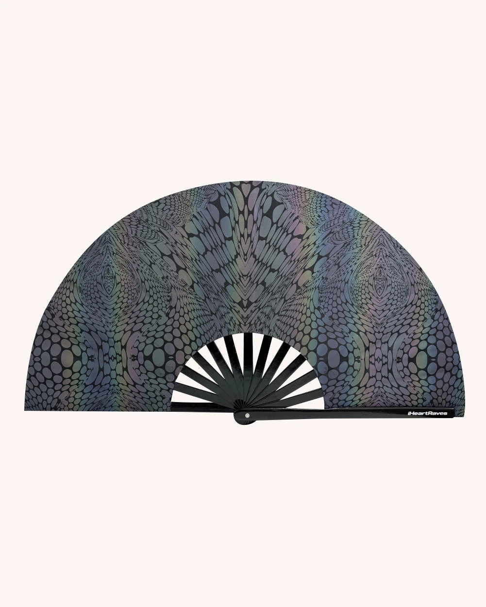 Slither into the spotlight with the Viper Vision Rainbow Reflective Hand Fan! This trippy masterpiece is designed to captivate and mesmerize, with its enchanting reflective viper print.